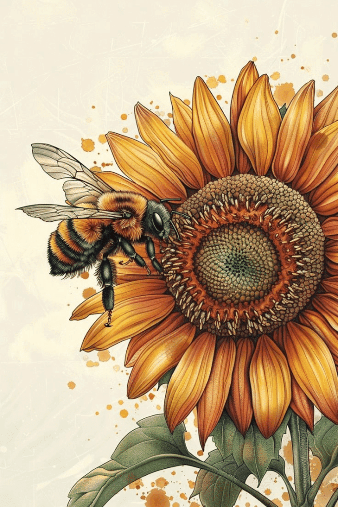 The structure of a sunflower is particularly appealing to bees. Sunflowers have what’s known as a composite flower head, made up of numerous small flowers or florets packed closely together. This structure makes it easy for bees to move efficiently from flower to flower, maximizing their pollen and nectar collection.