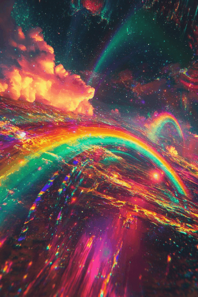 The rainbow’s multi-colored spectrum can also signify spiritual awakening and enlightenment. It represents a full, balanced connection with all aspects of self and the universe, reminding us that every part of our being, from the physical to the spiritual, is connected and vibrant.