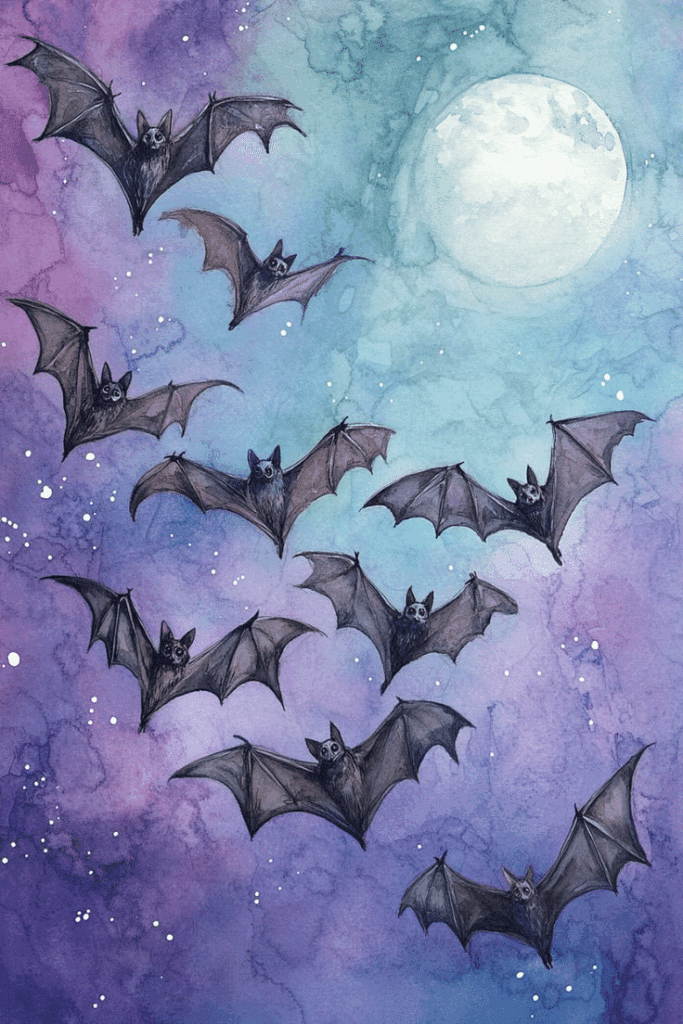 • Swarm of Bats: A swarm of bats could represent feeling overwhelmed by fears or anxieties, suggesting that it’s time to face these issues rather than letting them take over.