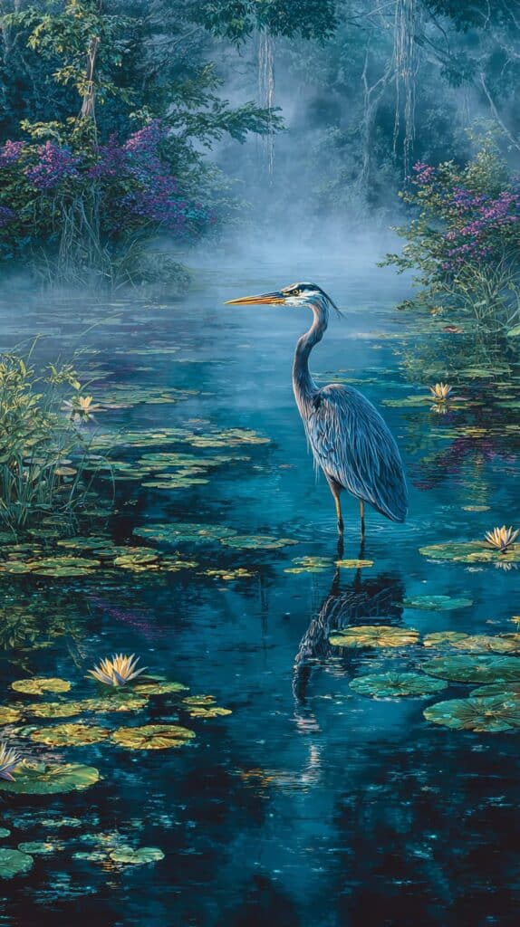 Spiritually, the blue heron represents self-reliance, patience, and the courage to walk your own path. It’s a symbol of finding balance between movement and stillness, of knowing when to take action and when to simply be. Many traditions see the heron as a guide for personal growth, independence, and connection to the deeper currents of life.