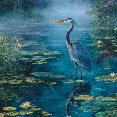 The bird’s stillness by the water’s edge can be seen as an invitation to connect with your emotional depths without letting yourself be swept away.