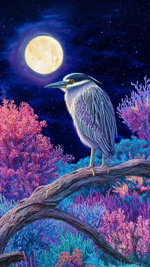 While daytime birds often symbolize activity and visibility, the night heron thrives in the shadows, reminding us that there’s strength in what is hidden and that some answers come only in stillness.