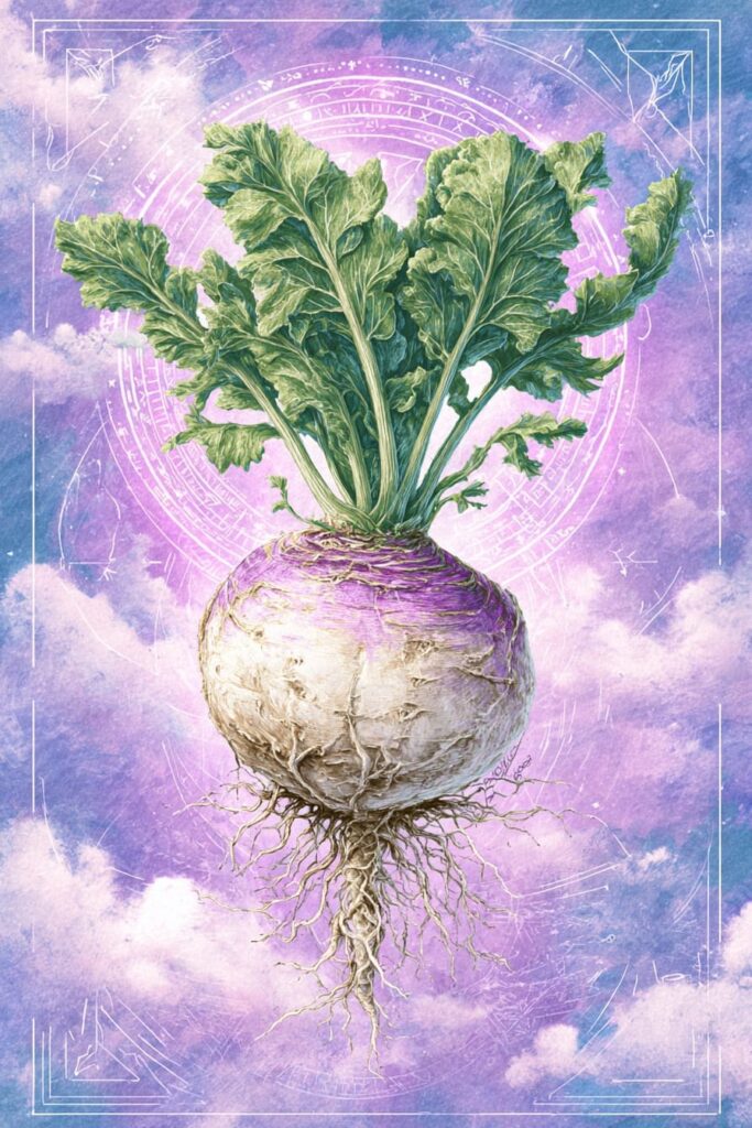 Rutabagas are root vegetables, a cross between cabbage and turnip by botanical family ties. They grow low to the soil, gather nutrients from the earth, and hide their sweetness beneath a rough skin. That humble life — quiet, steady, hidden strength — sets the stage for their spiritual symbolism.
