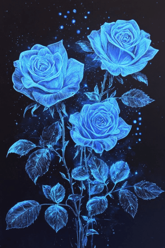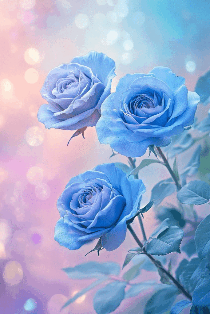 Blue roses captivate with their unique and mysterious beauty. Unlike traditional roses, which are commonly found in red, pink, white, or yellow, blue roses are rare and often artificially created. Their rarity and enchanting color have imbued them with deep and varied symbolism.