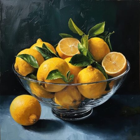 In historical European art, particularly in still-life paintings from the Renaissance, lemons were often depicted alongside other exotic fruits. This was a display of wealth and abundance, as lemons were considered luxurious items not easily accessible to everyone.