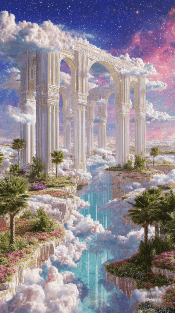 In Hinduism, different gods and goddesses live in divine realms, like Vaikuntha (home of Vishnu) or Kailasa (Shiva’s mountain abode). In many traditional Indigenous belief systems, the divine may live in the sky, in sacred mountains, in rivers, or even in the land itself.