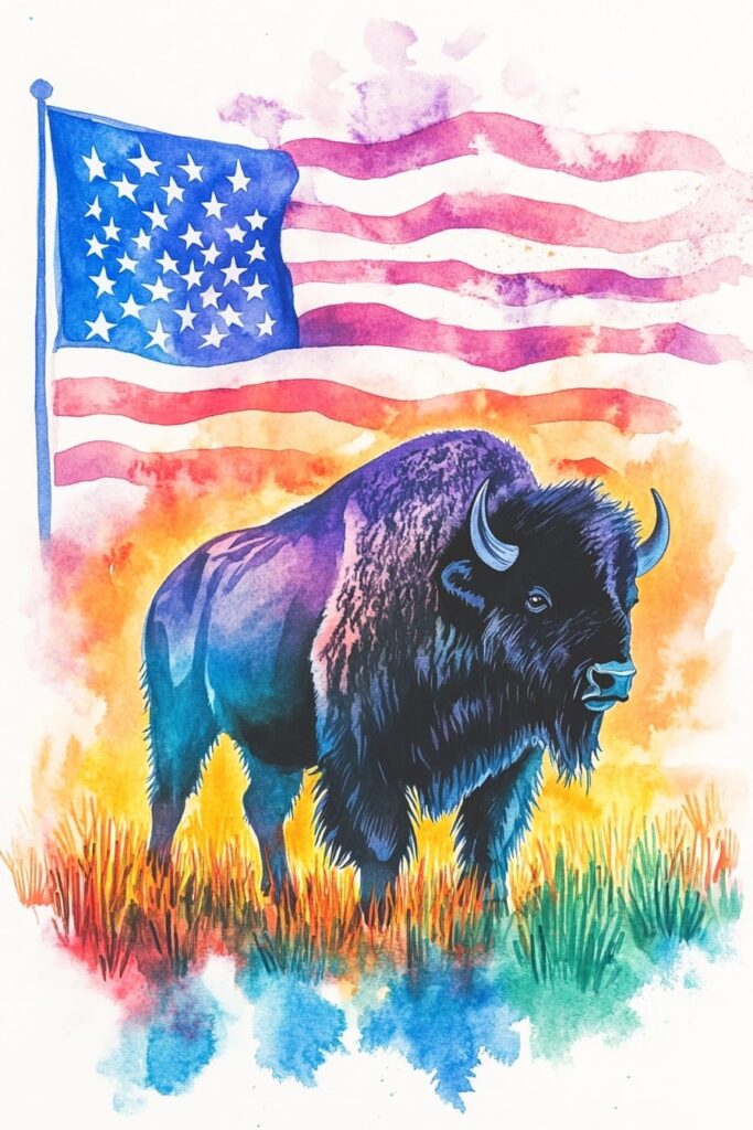 Today, the bison is a living reminder of America’s roots in the wild and the balance between human activity and nature. It symbolizes unity across cultures, as it is revered by Native peoples and celebrated by all Americans as part of the nation’s shared heritage. Its image appears on coins, state flags, and in countless pieces of art, continually reminding us of its strength and survival.